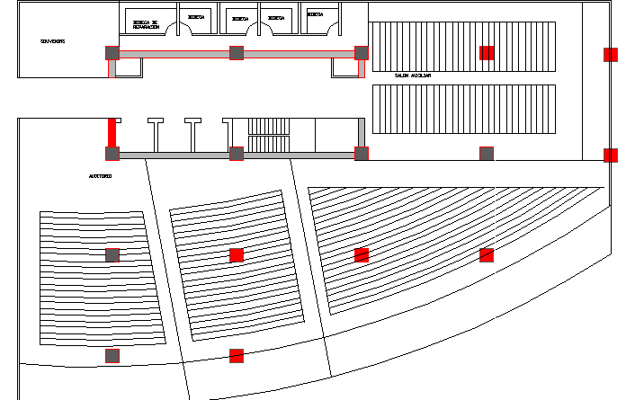 General layout plan details of office building tower that includes a detailed view of indoor offices, general hall, passage and much more of building plan.
