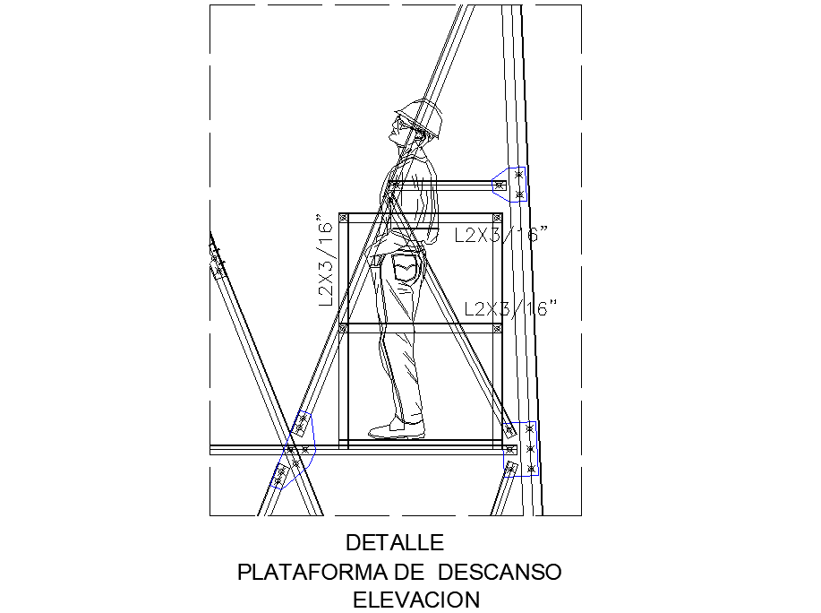 Elevation rest platform detail autocad file, bolt nut detail, reinforcement detail, wooden detail, etc.