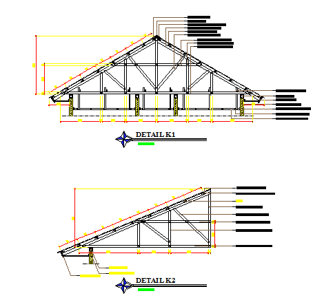Here the Section design drawing of Roof trust design drawing with all used material mentioned dimension mentioned and all detailing design drawing in this auto cad file.