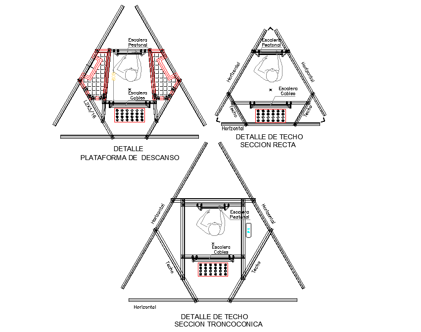 Rest platform plan detail layout file, dimension detail, naming detail, hatching detail, etc.