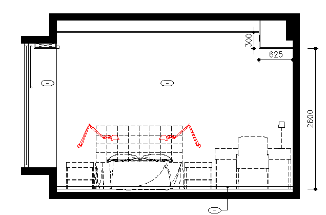 Front sectional detail of bedroom, front view detail of bed and lamp details, sectional details in auto cad format