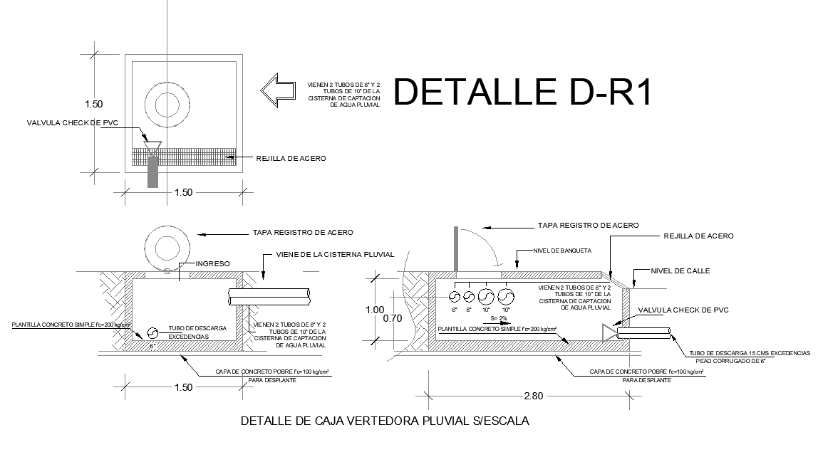 Box release pluvial plan dwg file, dimension detail, naming detail, hatching detail, pipe detail, etc.