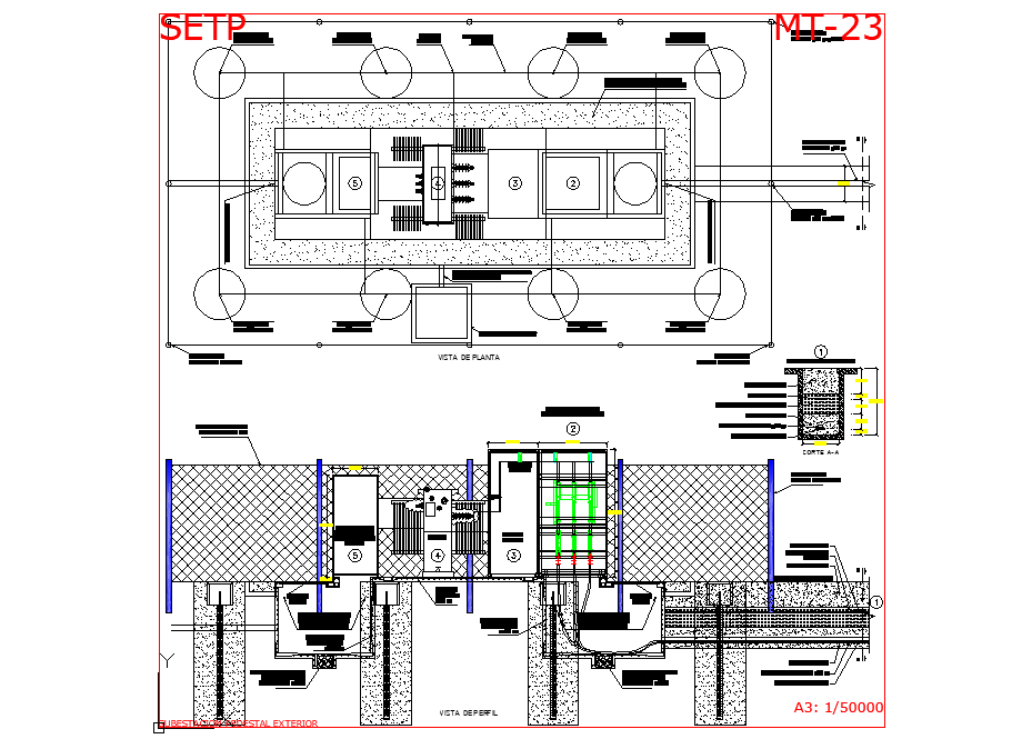 Substation pedestal type 1000kva autocad file, dimension detail, naming detail, hatching detail, concret mortar detail, section line detail, etc.