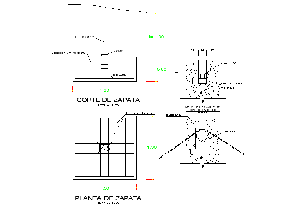 Foundation plan and section autocad file, dimension detail, naming detail, reinforcement detail, bolt nut detail, concrete mortar detail, etc.