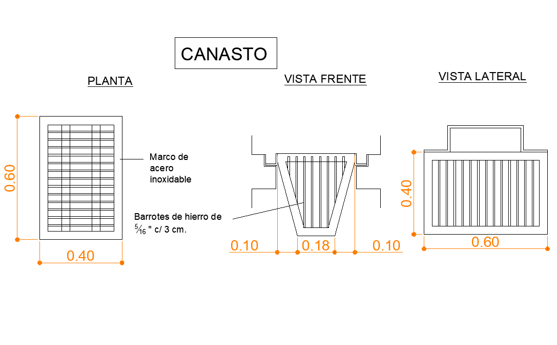 Basket plan and section dwg file, dimension detail, naming detail, hatching detail, front elevation detail, side elevation detail, etc.
