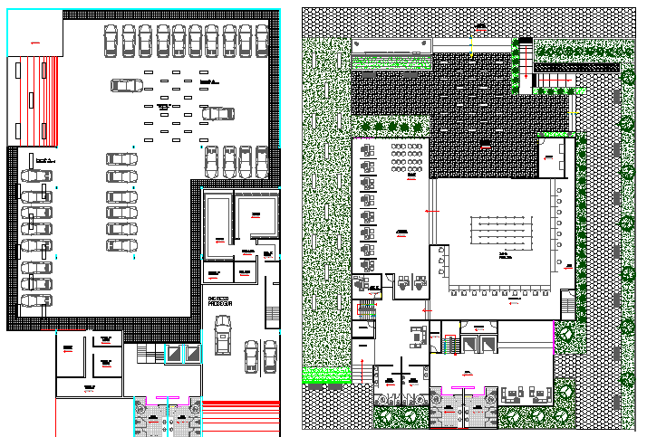 Landscaping and ground floor layout plan details of bank building dwg file.