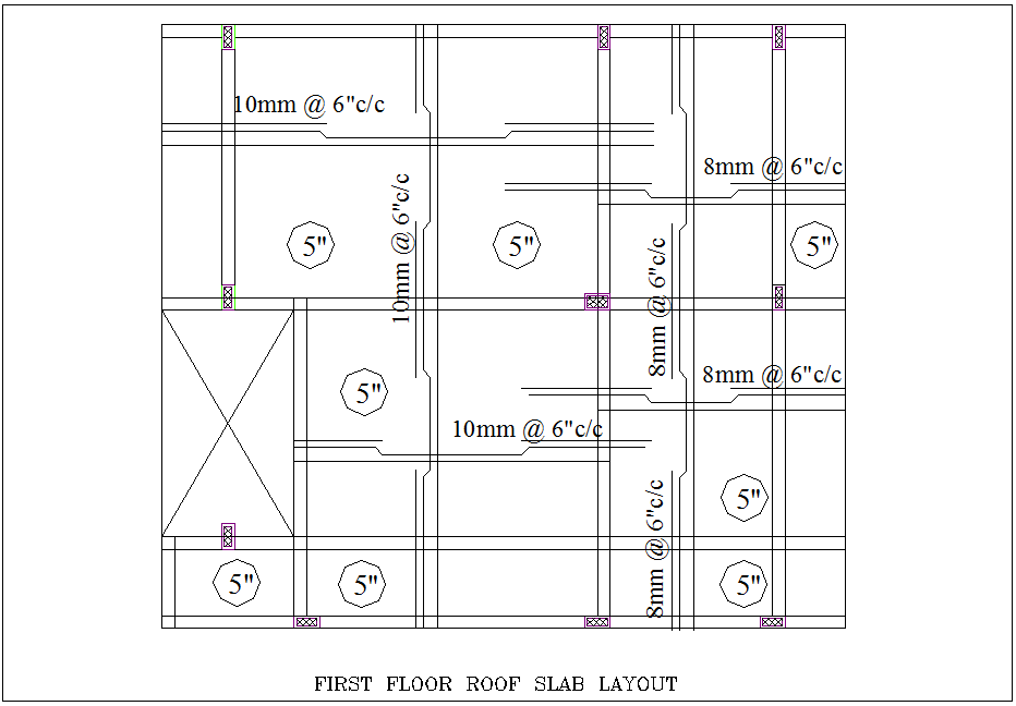 Roof slab layout of first floor for Soldier's division office dwg file in plan with view of area distribution and view of slab view with detail in plan.
