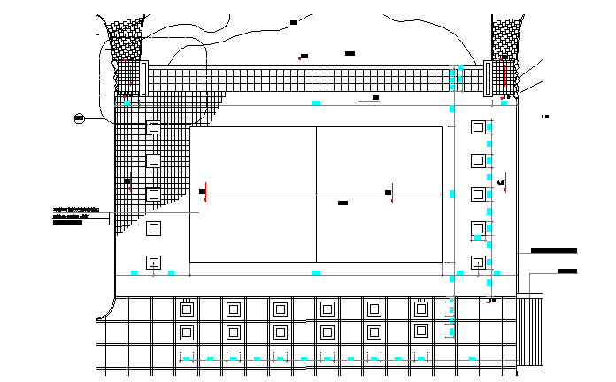 Basket ball court top view plan, top view architectural detail of a basket ball is shown in auto cad format