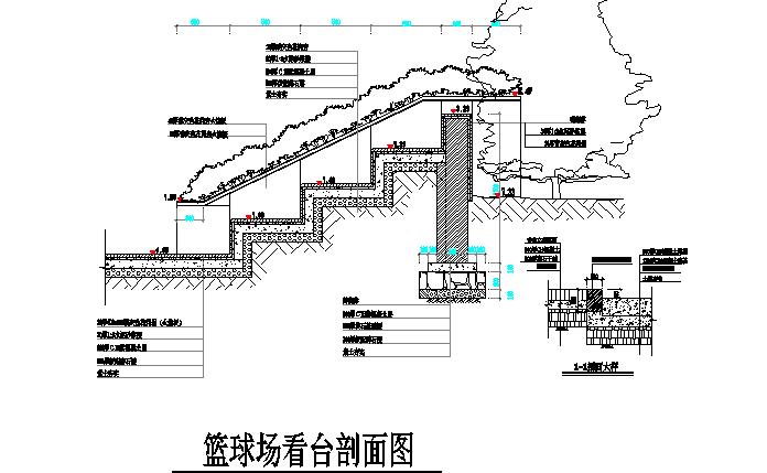 Foundation of staircase detail, Sectional details with text detailing, sectional details with measurement and text is shown