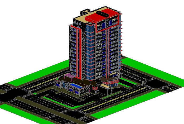 3d design of multi-story administrative building dwg file