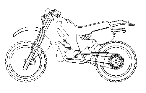 Motor bike 2d elevation,Front view of bike in 2d,,here there is side view elevation of bikein 2d