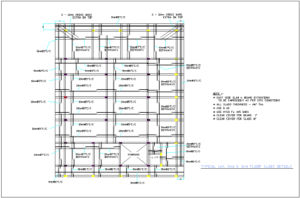 First to third floor plan slab detail in plan with note for office area dwg file in plan with view of area distribution with view of 12 mm cross bar extra on top with view slab view with different view with view with necessary detail and dimension in plan.