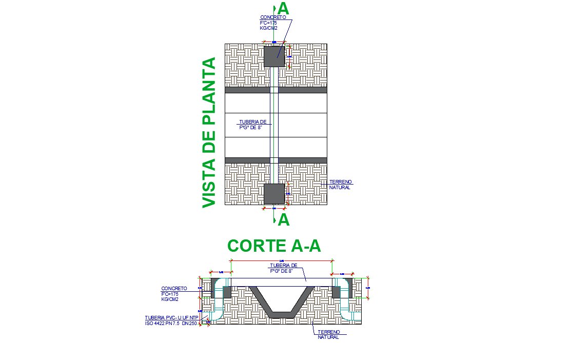 Road junction plan and section layout file, naming detail, dimension detail, hatching detail, side drainage detail, section line detail, etc.