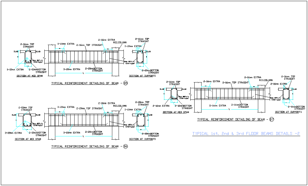 First to third floor elevation and section view for office dwg file in elevation with view of beam length with column position view with necessary detail.