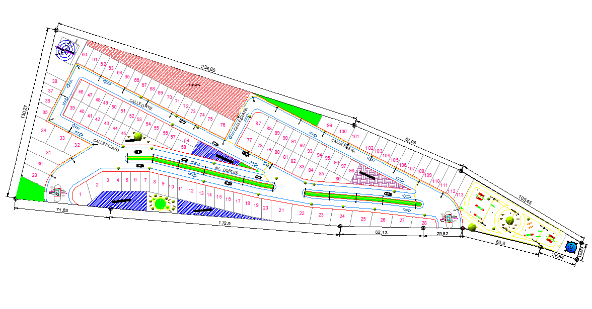 Layout plot building plan dwg file, dimension detail, naming detail, block divided detail, landscaping detail in tree and plant detail, hatching detail, etc.