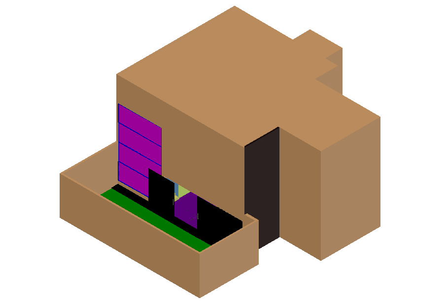 Living room of 3d view of house with architectural view dwg file in 3d view of house with view of