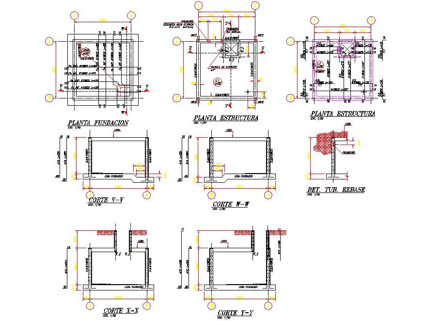 Tank plan and section layout file, centre line plan detail, dimension detail, naming detail, cut out detail, hatching detail, etc.