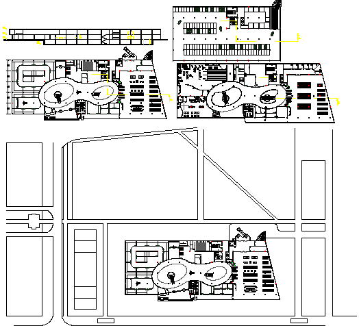 Multi-story shopping mall floor plan details of all floors dwg file.