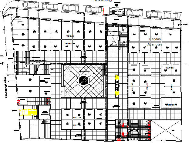 Supply market architecture layout plan details that includes a detailed view of main entry and exit gate, elevators and staircase, shops and showrooms, cafeteria, branded shops, education center, fun zone, chocolate room, departmental stores, food stores, fun points and much more of market project.