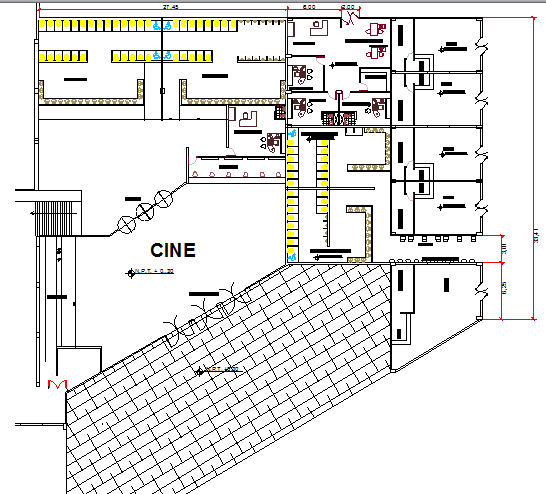 Top floor layout plan details of shopping mall dwg file.
