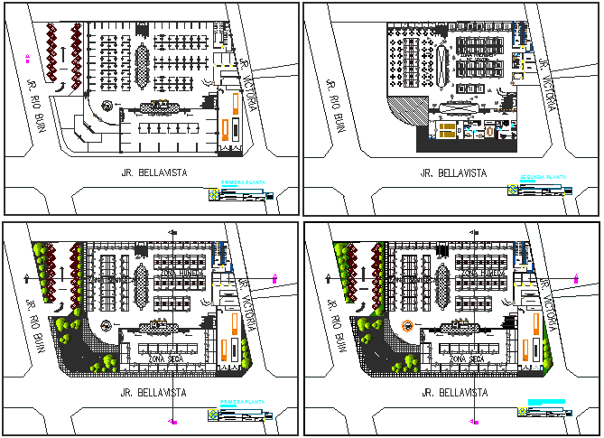 All floors layout plan details of shopping center dwg file