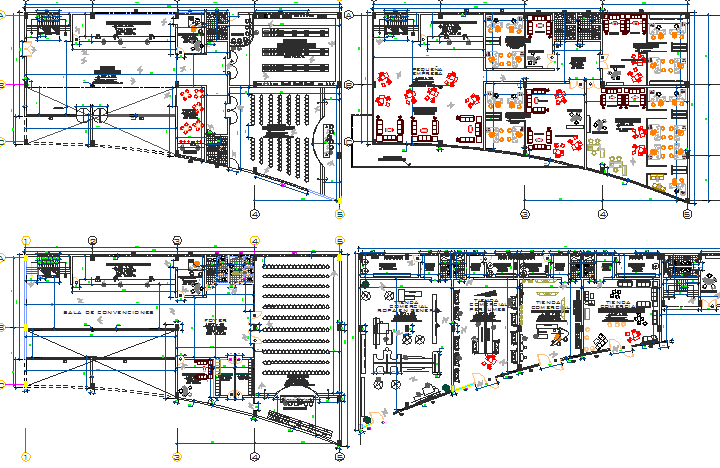Ground, first, second and top floor layout plan details of shopping mall dwg file