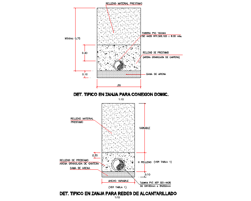 Typical detail in ditch for connection domical layout file, dimension detail, naming detail, soil detail, hatching detail, etc.