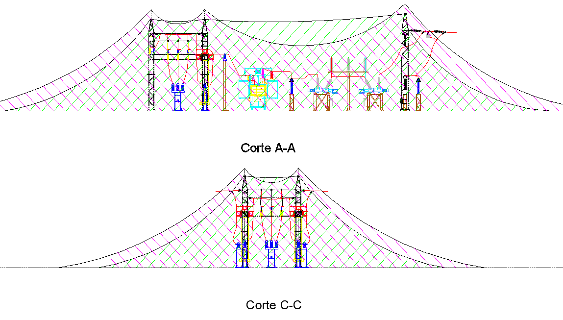 Steel framing Section hybrid electric substation design layout file, section A-A’ detail, section C-C’ detail, electric wire detail, spring detail, etc.