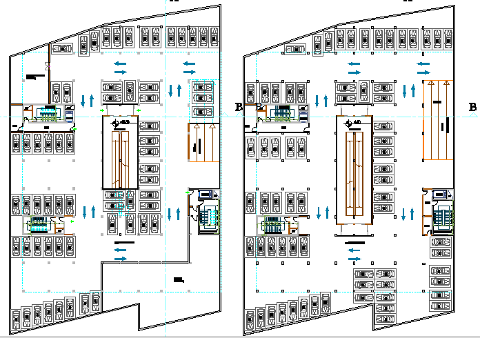 Basement floor of car parking view of shopping mall dwg file.