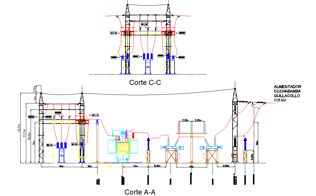Section electric substation dwg file, naming detail, dimension detail, section A-A’ detail, section C-C’ detail, reinforcement detail, bolt nut detail, etc.