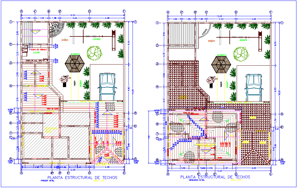 Ceiling plan of structure view of two level housing floor plan dwg file