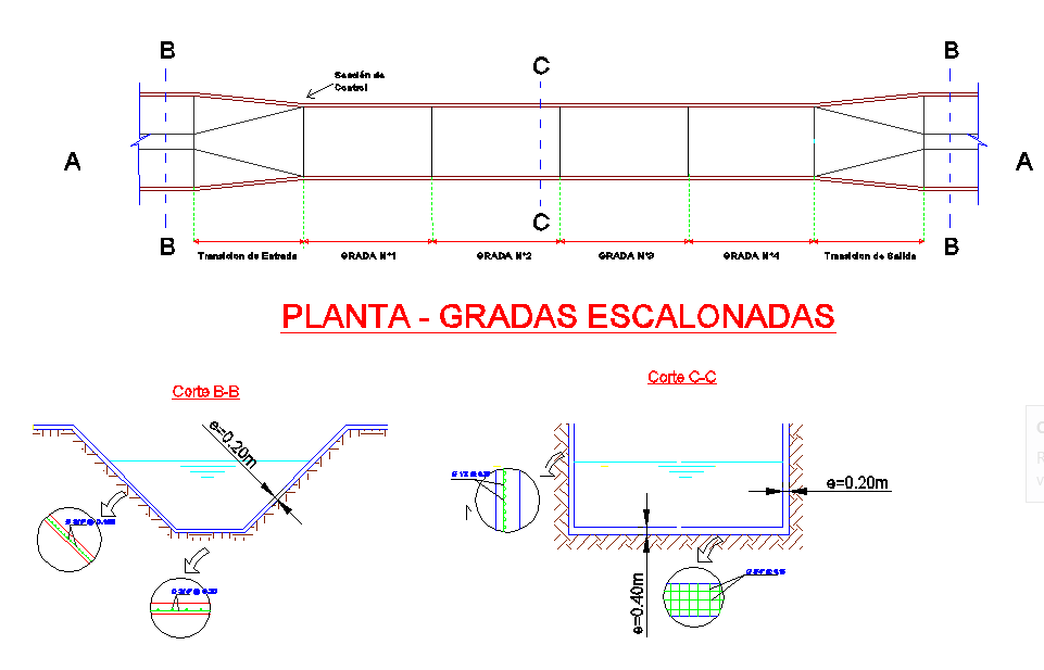 Tiered gradas plant plan and section autocad file, section line detail, section B-B’ detail, section C-C’ detail, dimension detail, naming detail, hatching detail, etc.