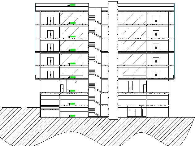Main sectional view details of office building dwg file.