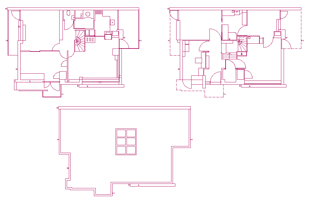 Single family home plan dwg file, stair detail, furniture detail in window and door detail, hidden line detail, ground floor to roof plan detail, etc.