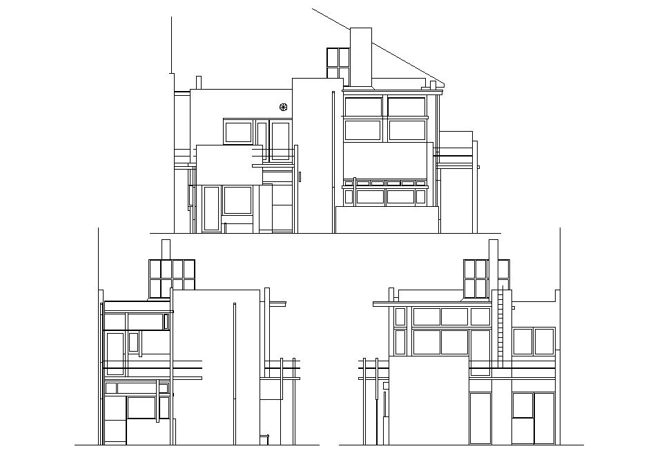 Elevation Single family home plan autocad file, front elevation detail, left elevation detail, right elevation detail, furniture detail in door and window detail, roof plan detail, etc.