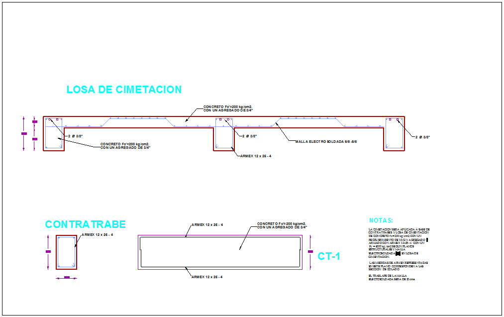 Foundation detail with wall view with construction view for house dwg file