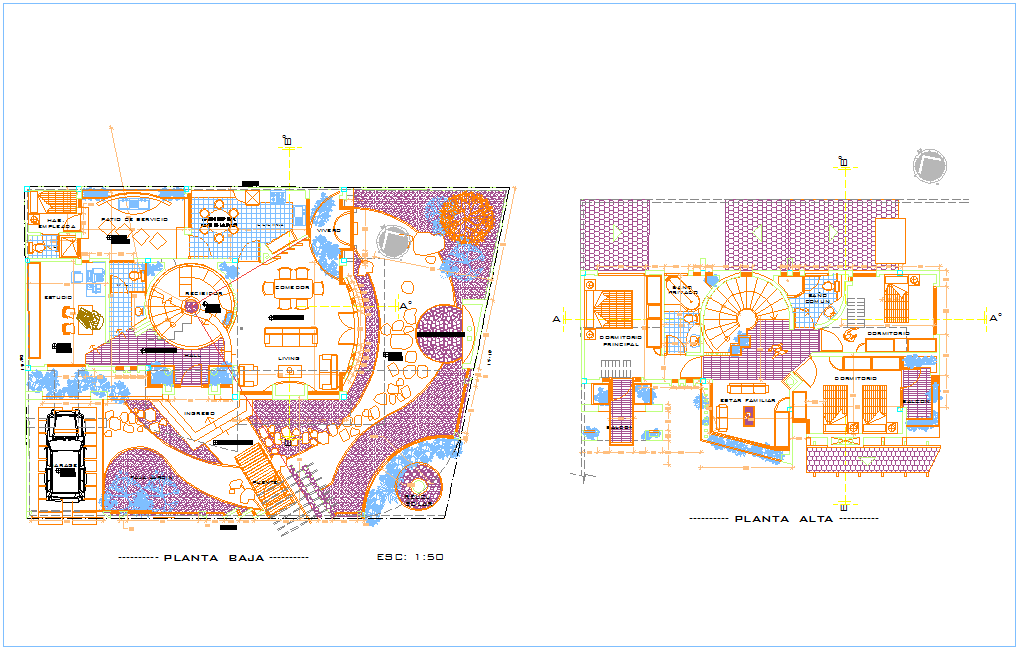 High and low plan for residential area with view architectural view dwg file in low plan with view of
