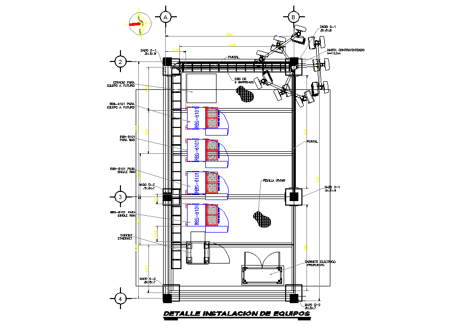 Equipment installation detail autocad file, centre line plan detail, north direction detail, dimension detail, naming detail, furniture detail in door and window detail, etc.