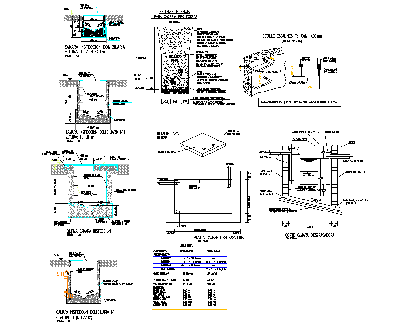 Detail sewage plan and section layout file, dimension detail, naming detail, concrete mortar detail, pipe detail, isometric view detail, main hole detail, table specification detail, etc.