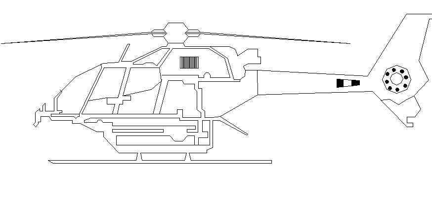 Helicopter front 2d elevation, front view elevation detail of helicopter design in auto cad format