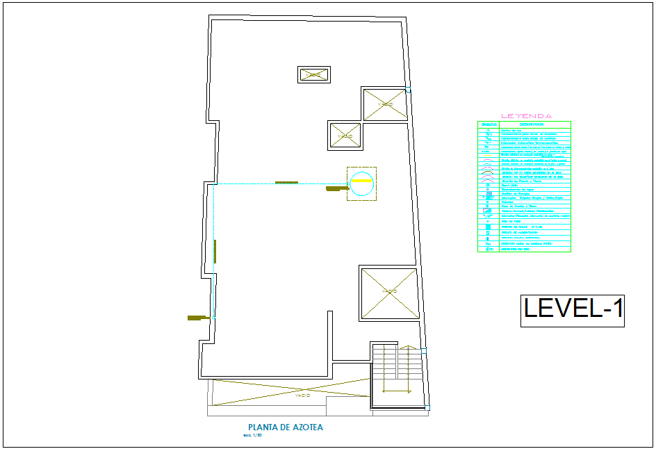 Roof top plan with electrical view of house with its legend for first level dwg file in plan with view of
