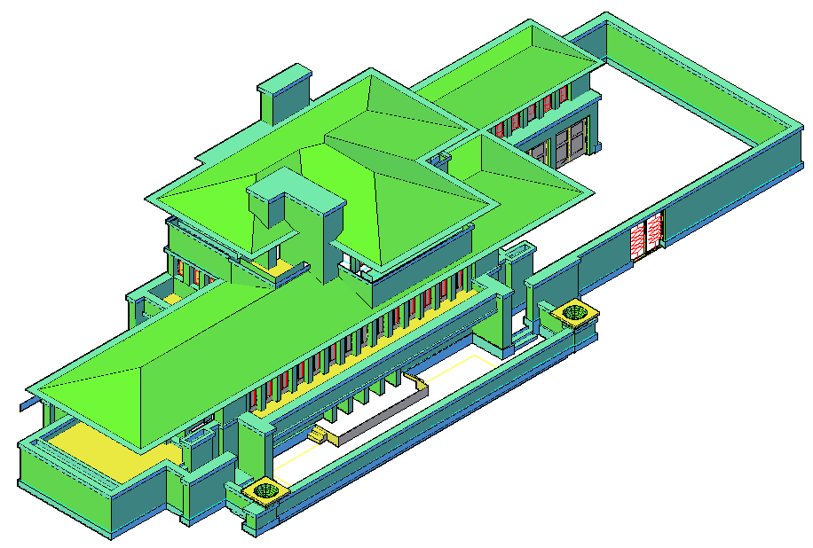 3D view of designer house dwg file in 3d view of house with view of entry way with step,wall and wall