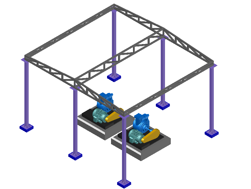 Electro bomb as roof 3 D autocad file, steel framing detail, foundation detail, motor detail, etc.