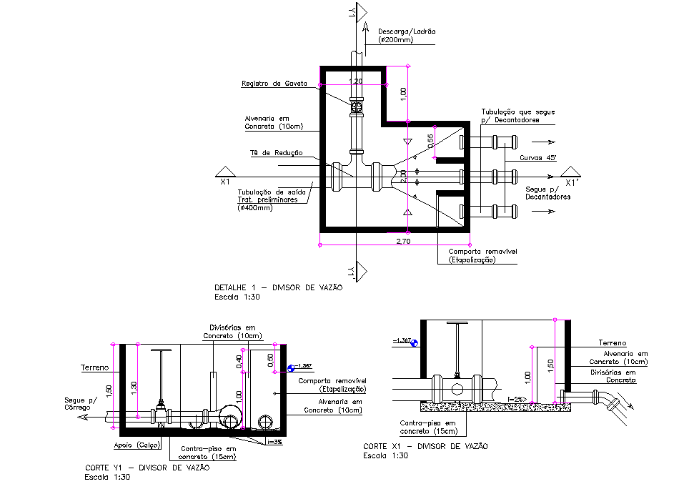 Treatment shredder layout file, section lien detail, dimension detail, naming detail,pipe detail, leveling detail, etc.