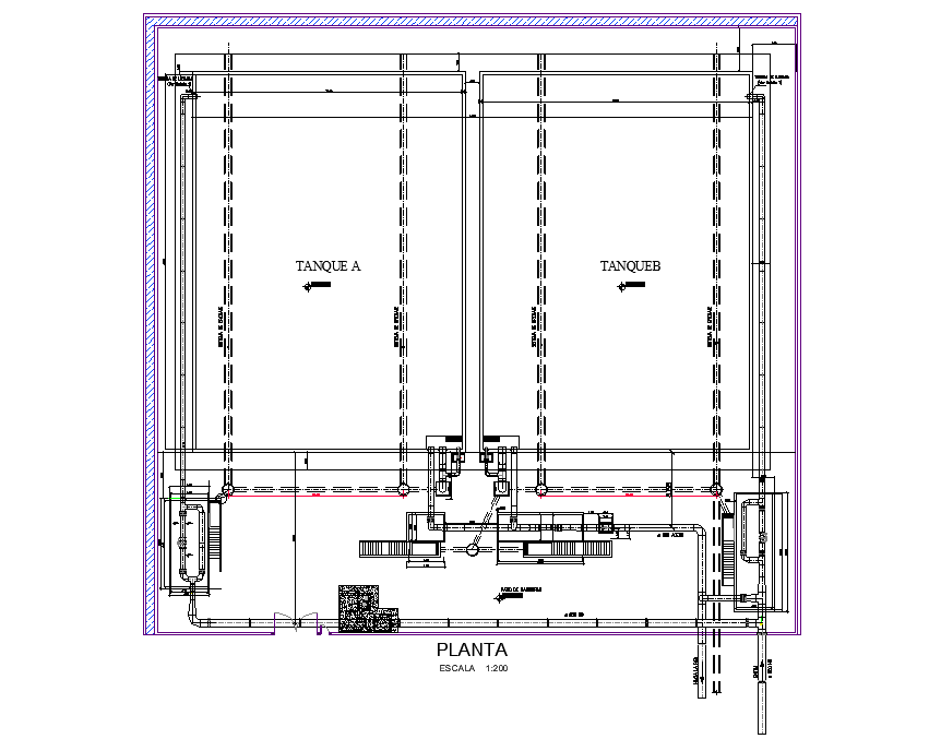 Drinking water supplies plan dwg file, scale 1:200 detail, dimension detail, naming detail, hidden line detail, stair detail, leveling detail, etc.