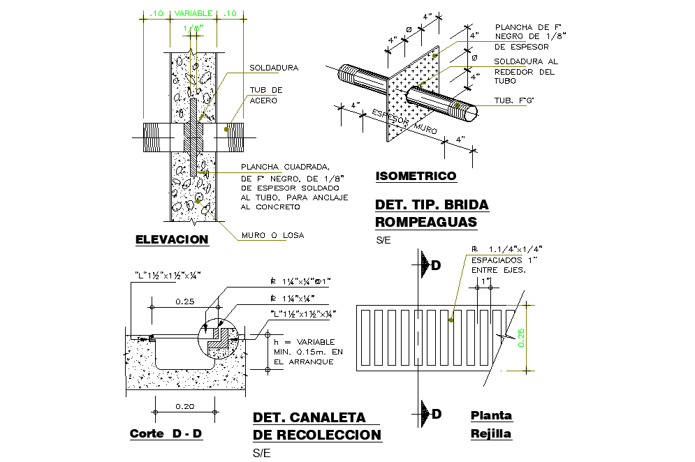 collection gutter plan detail dwg file, plan, elevation and section detail, section line detail, dimension detail, naming detail, concrete mortar detail, bolt nut detail, stone detail, etc.