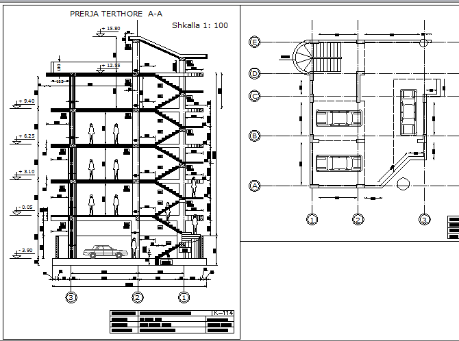 Parking lot and departmental office sectional details dwg file
