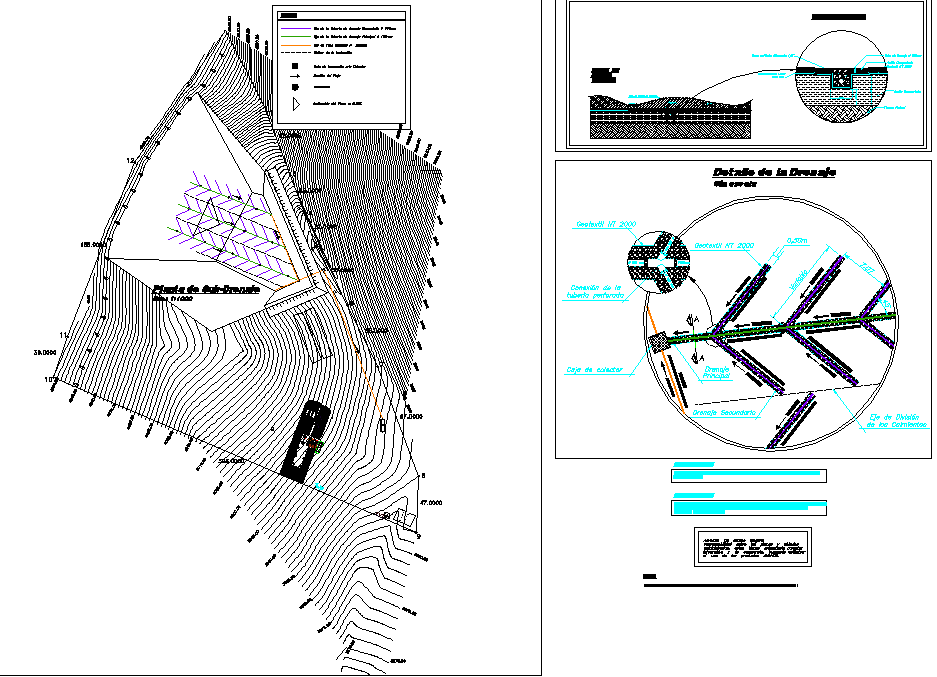 Geotextile sanitary land fill layout file, dimension detail, naming detail, specification detail, hatching detail, etc.