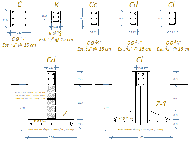 Constructive and auto-cad details of house representation building that includes a detailed view of cut column sectional view, column view, beam view and much more of house building project.