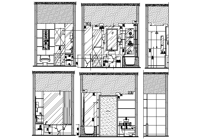 washroom elevation dwg file . detailing of plumbing , wash room tile . elevation design of wash basin , storage , bathtub , w.c act . .